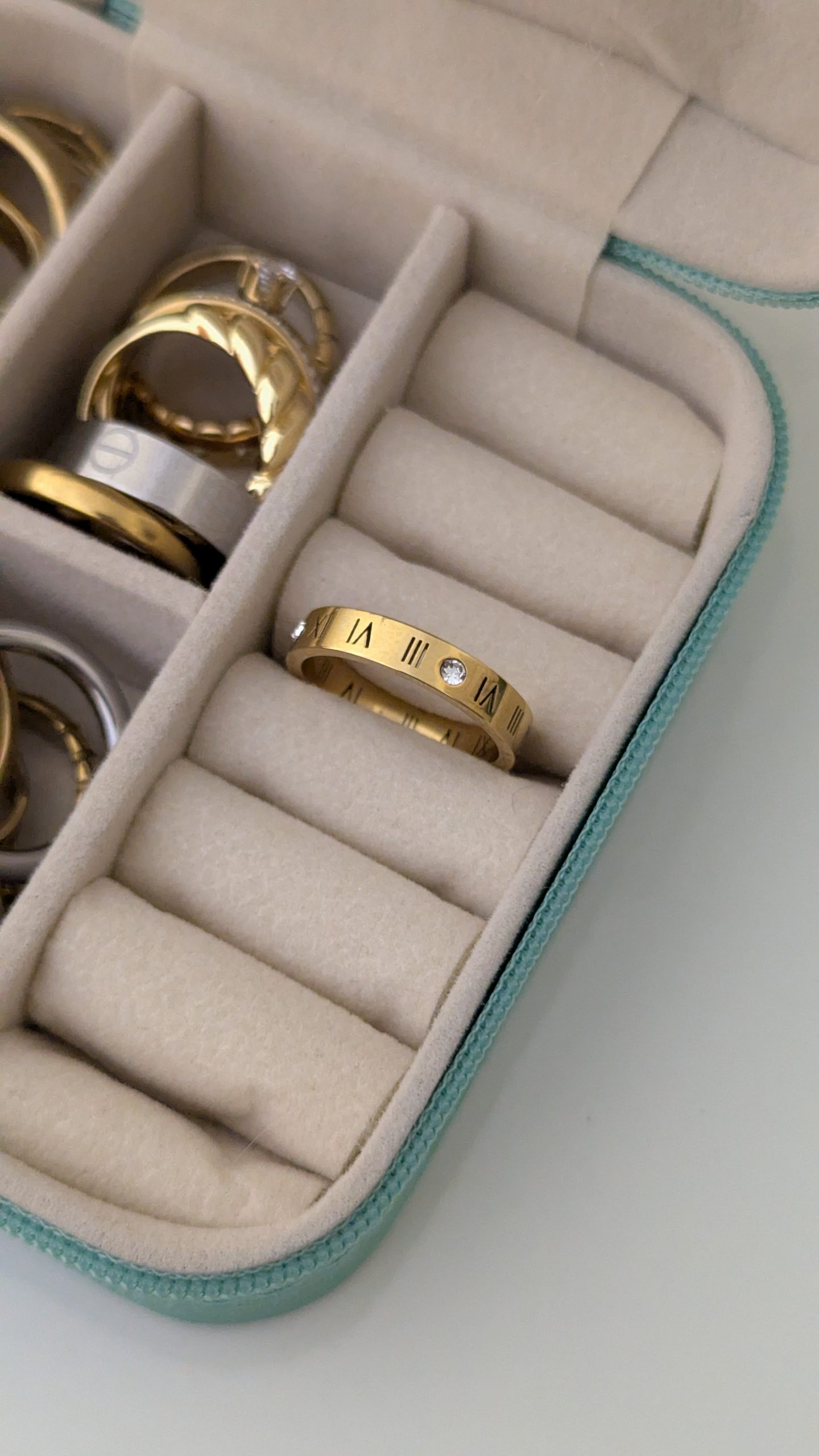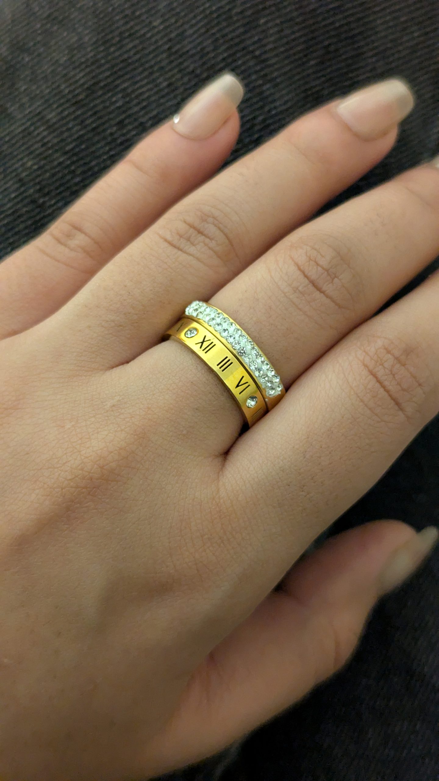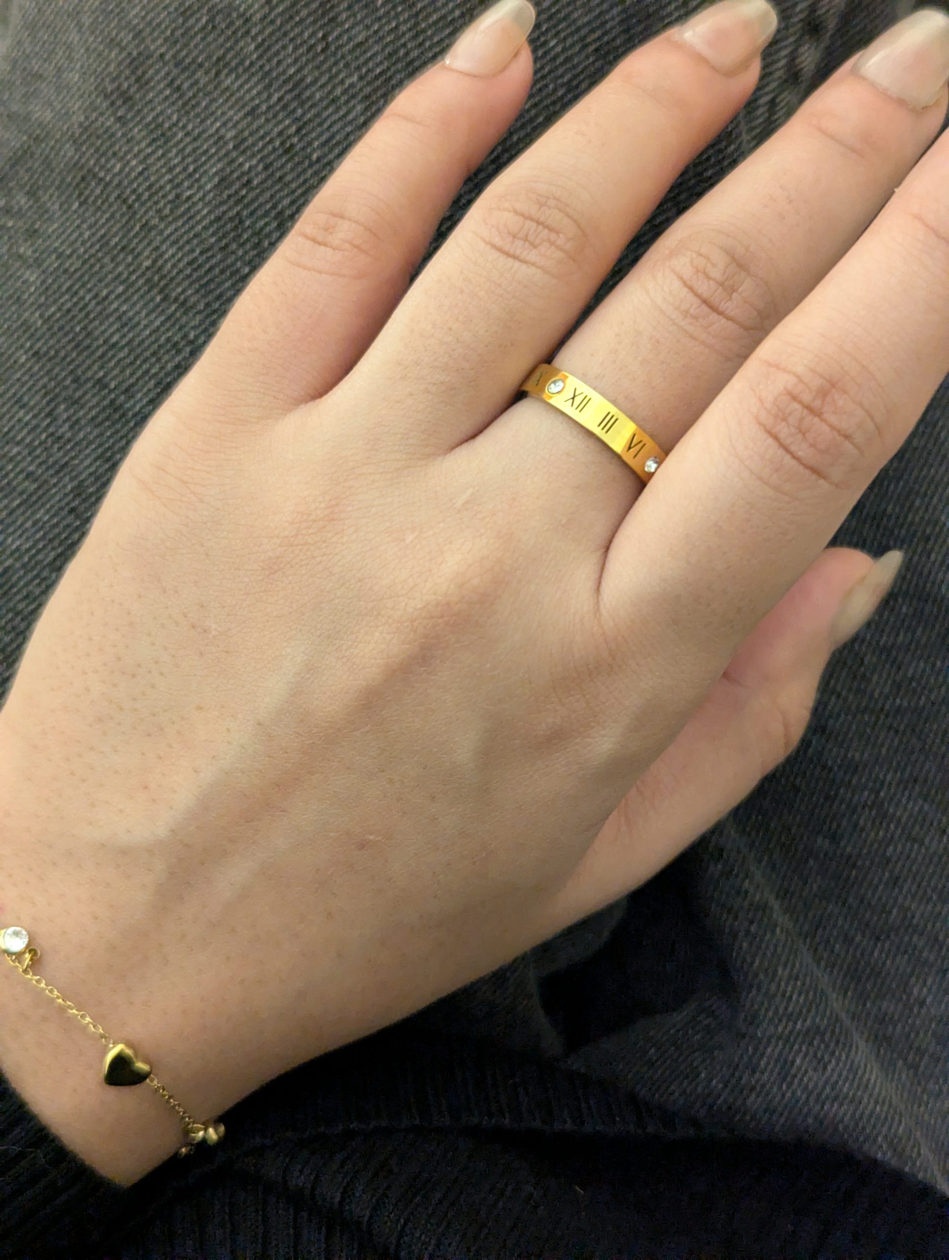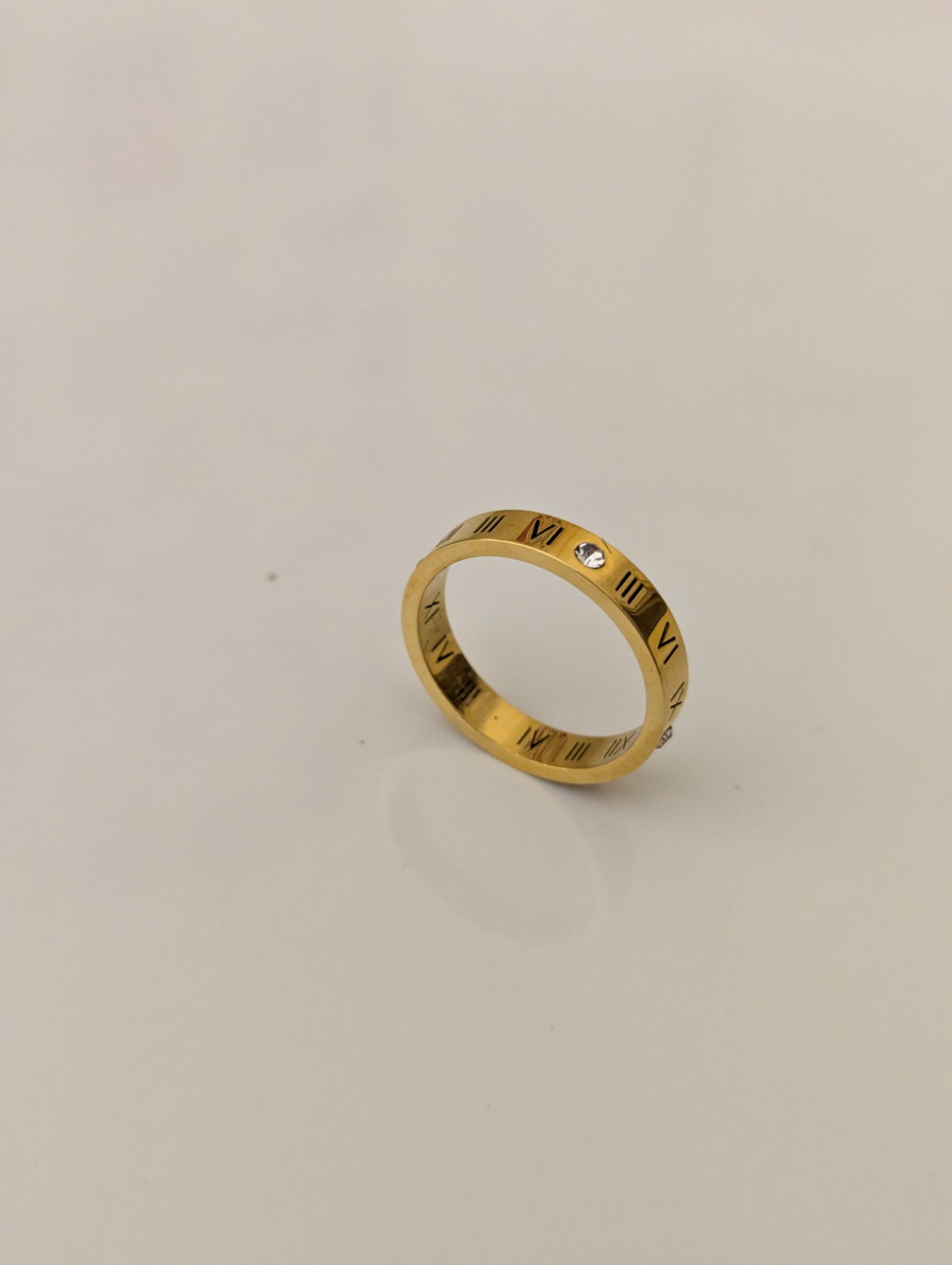 Skip to contentA gold-plated band featuring etched Roman numerals and crystal accents for a timeless, architectural look.